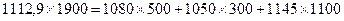 (1080 – 1112,9)×500 + (1050 – 1112,9)×300 + (1145 – 1112,9)×1100 = 0