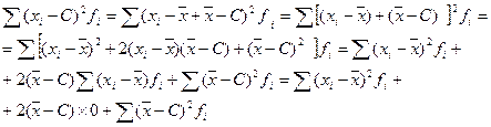 Следовательно, сумма квадратов отклонений индивидуальных значений признака от произвольной величины С больше суммы квадратов их отклонений от своей средней на величину