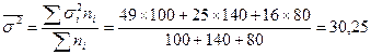 Рассчитаем среднюю из внутригрупповых дисперсий: