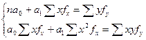 Система нормальных уравнений для определения коэффициентов уравнения регрессии примет вид: