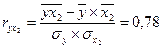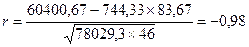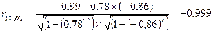 2. По формуле (9.6.) значение коэффициента корреляции составило: