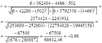 Таким образом, результат по всем формулам одинаков и свидетельствует о сильной обратной зависимости между изучаемыми признаками.
