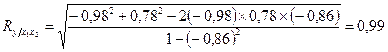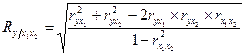 Множественный коэффициент корреляции для двух факторных признаков вычисляется по формуле: