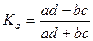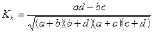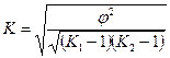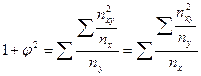 - определяется как сумма отношений квадратов частот каждой клетки таблицы к произведению итоговых частот, соответствующего столбца и строки. Вычитая из этой суммы «1», получим величину