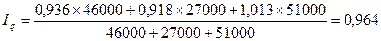 Индивидуальные индексы физического объема будут равны 0,936; 0,918; 1,013. С учетом этого рассчитаем среднеарифметический индекс: