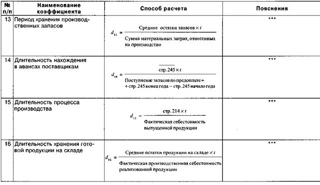 Что касается длительности хранения готовой продукции, то предыдущий расчет можно дополнить расчетом длительности хранения каждого вида продукции (структурная оценка).