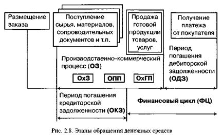 Разрыв между сроком платежа по своим обязательствам перед поставщиками и получением денег от покупателей является финансовым циклом, в течение которого денежные средства отвлечены из оборота (ФЦ):