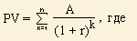 Приведенная стоимость серии равных платежей и поступлений, происходящих на протяжении некоторого количества периодов называется аннуитетом и связанна преимущественно с использованием долговых финансовых инструментов.