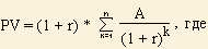 | Приведенная стоимость срочного аннуитета | постнумерандо |