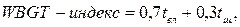 Оценка совместного действия температуры, влажности, подвижности воздуха и тепловых излучений на работающего производится для помещений с избытком тепла по WBGT–индексу по формуле
