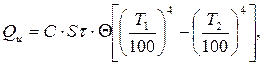 Количество тепла, переданного посредством излучения (Q и, Дж) от более нагретого твердого тела с температурой Т 1 ( К) к менее нагретому телу с температурой Т 2 ( К), определяется по уравнению
