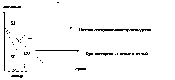 НАПРИМЕР, США и другие страны(Англия) и 2 товара – пшеница и сукно