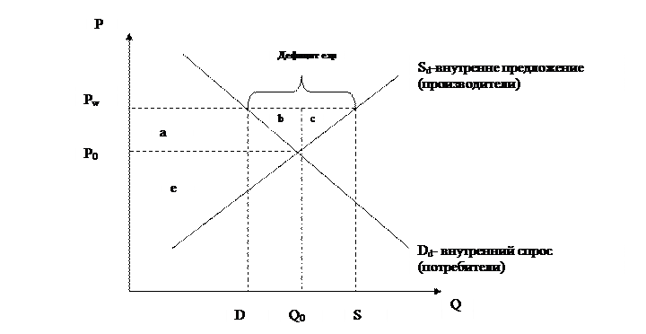 Область c - потребительский выигрыш ВТ(потребительский излишек), более низкие цены.