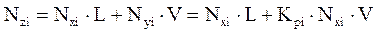 Константа фазового равновесия i-го компонента характеризуется отношением мольной доли компонента в газовой фазе (уi или Nyi) к мольной доле этого компонента в жидкой фазе (хi или Nxi), находящейся в равновесном состоянии с газовой фазой: