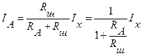 Пример. Измерение тока в участке цепи с помощью шунтированного амперметра. Показания амперметра I A связаны с измеряемым током IХ соотношением