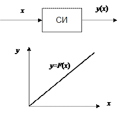 Основная статическая характеристика СИ – функция преобразования. Функция преобразования – функциональная зависимость выходной величины от входной. Эта зависимость может описываться аналитически, графически или в виде таблицы. В случае аналитического описания будем писать y = F (x).