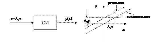 Сдвиг и дрейф нуля характеризуются так называемой аддитивной погрешностью CИ. При наличии аддитивной погрешности выходной сигнал CИ записывают в виде y = F (x)+Δ0 y – в общем случае или y = Kx + Δ0 y