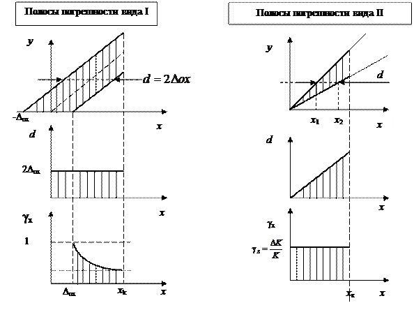друг под другом с тем, чтобы их удобнее было воспринимать. Назовем эти полосы как полосы погрешности вида I. Здесь