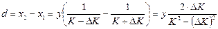 Найдём ширину полосы неопределённости в этом случае. При фиксированном значении выходного сигнала y, вследствие неопределенности D K значения K, это значение y реализуется при двух значениях х: