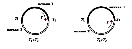 Если взять два металла 1 и 2 и привести их в контакт, а концы нагреть так, что Т 1 не равна Т 2, то возникает ток, называемый термоэлектрическим током: