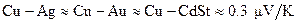 Наиболее распространенные проводники, находящиеся в контакте при одинаковых температурах, создают следующую разность потенциалов