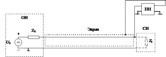 Разность потенциалов между проводниками, устанавливая между ними экран и повторитель напряжения (ПН).