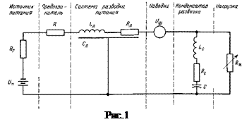 Параллельно нагрузке может быть также подключен шунтирующий конденсатор развязки С. Внутреннее сопротивление R г источника питания является функцией стабилизирующих свойств источника питания. Это сопротивление можно уменьшить, улучшив стабилизацию напряжения источника питания. Резистор R представляет собой сопротивление предохранителя; элементы R л, Lл и С л – распределенные сопротивление, индуктивность и емкость линии связи, используемой для подключения источника питания к нагрузке; U ш – генератор напряжения с сосредоточенными параметрами, отображающий шумы, наводимые в проводах от других схем. Шунтирующий конденсатор С обладает паразитными сопротивлением Rс и индуктивностью Lс. Резистор R н является нагрузкой.