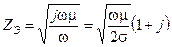 В случае проводников (s>> j we) полное характеристическое сопротивление называется сопротивлением экрана Z Э и определяется как
