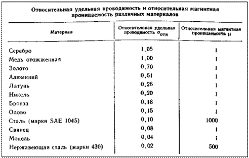 (дБ). В этом уравнении h представляет собой толщину экрана (в миллиметрах). Значения относительной удельной проводимости и относительной магнитной проницаемости различных материалов, которые чаще всего используются для экранов, приведены в таблице.
