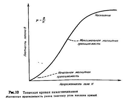 - уменьшение магнитной проницаемости при увеличении напряженности поля (эффект насыщения);