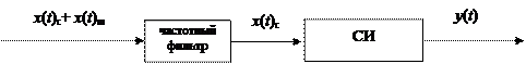 Если функция преобразования СИ – линейная, то в этом случае шум от сигнала можно отделить, установив перед сИ частотный фильтр, пропускающий сигнал или подавляющий шум (см. рис.). фильтр лучше всего устанавливать перед СИ. Это объясняется тем, что шумовой сигнал нагружает СИ (возбуждает или потребляет в нем дополнительный ток) и уменьшает рабочий диапазон.