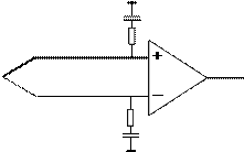 Рассмотрим, например, измерение температуры объекта с помощью термопары, подключенной к дифференциальному усилителю. В этой схеме подавление помех обеспечивается за счет симметрирования сигнальной цепи, а также фильтрации переменных сигналов RC – цепочкой. Эта цепочка имеет большое сопротивление для сигналов с малой частотой (в том числе, для полезного сигнала), и малое сопротивление для сигналов с частотой f > f 0 (шумы), закорачивая их на землю.