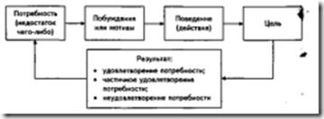 Побуждение — это ощущение недостатка в чем-либо, имеющее определенную направленность. Оно является поведенческим проявлением потребности и сконцентрировано на достижении цели. Когда человек достигает цели, его потребность оказывается удовлетворенной, частично удовлетворенной или неудовлетворенной. Такой тип поведения показан на рис. 2.2.