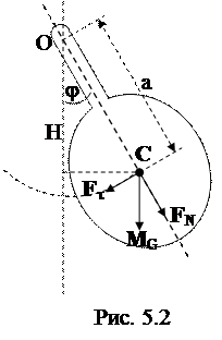В поле сил тяготения колебания физического маятника (рис. 5.2) происходят под действие возвращающей силы, составляющей силы тяготения F t = m g, которую можно разложить на две составляющие: по направлению прямой, перпендикулярной оси F n, и по направлению, перпендикулярному данному – F τ. Составляющая F n не создает вращающего момента, так как она перпендикулярна оси вращения (колебания). Поэтому возвращающей силой, создающей вращающий момент в данном случае, является