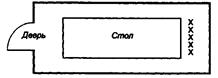 • Если конфигурация помещения такова, что затруднительно выполнить два первых требования, почетные места можно выбрать из тех, которые расположены лицом или хотя бы боком к окнам (все та же близость к свободному пространству!).