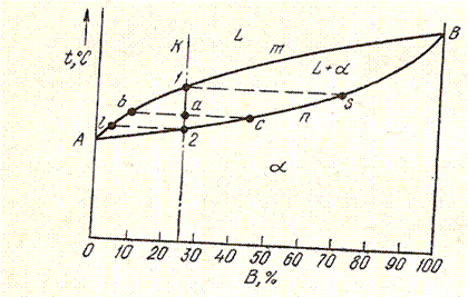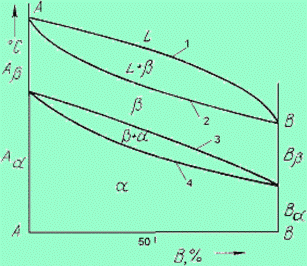 Диаграмма состояния для сплавов с ограниченной растворимостью в твердом состоянии (III рода)