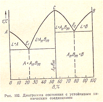 1. Постоянство состава, то есть сплав образуется при определенном соотношении компонентов, химическое соединение обозначается Аn Вm.