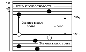 Wo, появляющейся за счет температуры, облучения, сильных электрических полей и т.д., некоторая часть электронов валентной зоны переходит в зону проводимости. Энергия