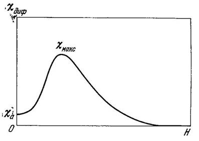 У парамагнетиков магнитная восприимчивость уменьшается с температурой, подчиняясь закону Кюри — Вейса. У ферромагнетиков магнитная восприимчивость с ростом температуры увеличивается, достигая резкого максимума вблизи точки Кюри.