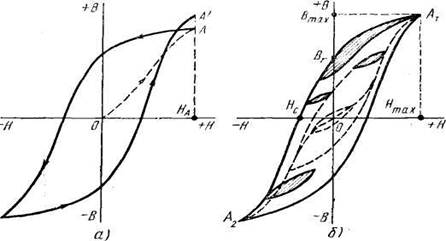 При циклическом изменении напряженности магнитного поля кривая изменения индукции (кривая перемагничивания) имеет форму замкнутой кривой – называемой петлей гистерезиса. Магнитным гистерезисом называется явление отставания изменения магнитной индукции от вызывающей эти изменения напряженности магнитного поля.