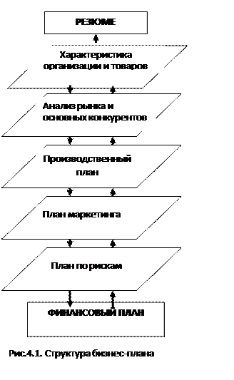Существует значительное число методических разработок по составлению бизнес-плана, но все они похожи и отличаются лишь последовательностью и составом разделов. Рассмотрим содержание разделов бизнес-плана, в соответствии со структурой, приведенной ниже (Рис.4.1).