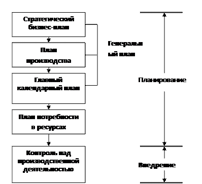 Иллюстрация, приведенная ниже, представляет иерархию планирования (Рис. 4.3). Первые четыре уровня – это уровни планирования. Последний уровень – это осуществление планов посредством контроля производственной деятельности и закупок.