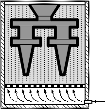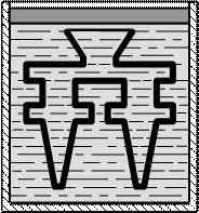 Для изготовления выплавляемых моделей используют легкоплавкие модельные составы на основе парафина, воска, стеарина, церезина и т.п. материалов. Модельный состав в пастообразном состоянии запрессовывают в пресс-форму требуемой конфигурации (рис. 3.18- а), состоящую из двух и более частей с соответствующим числом вертикальных или горизонтальных разъёмов. После затвердевания модельного состава пресс-форма раскрывается и модель выталкивается в ванну с холодной водой. Затем модели собирают припаиванием или приклеиванием в блок с общей легкоплавкой моделью литниковой системы (рис. 3.18- б). В один блок объединяют от 2 до 100 моделей. Для получения формы на поверхность модельного блока путём многократного погружения (рис. 3.18- в) наносят жидкую огнеупорную керамическую суспензию, после чего в специальной продуваемой установке (рис. 3.18- г) наносят на влажную суспензионную поверхность модельного блока слой сухого кварцевого песка. Затем модельный блок с нанесённым слоем сушат около 2 часов на воздухе или около 30 минут в среде аммиака. Повторяя процедуры нанесения жидкой суспензии, сухого песка и просушки, на модельный блок наносят от 3 до 6 слоёв огнеупорного покрытия, получая неразъёмную тонкостенную форму. Из этой формы модельный блок удаляется путём погружения на несколько минут в бак с горячей водой (рис. 3.18- д), в результате чего модельный состав расплавляется и всплывает на поверхность, откуда периодически удаляется для нового использования. После извлечения из воды оболочковую форму сушат, а затем устанавливают в контейнерную опоку и засыпают подпорным материалом (рис. 3.18- е), в качестве которого обычно используют сухой кварцевый песок. Затем опоку с формой устанавливают в электрическую печь и прокаливают не менее 2 часов при температуре 900°С для испарения воды, выгорания остатков модельного состава и спекания частиц связующего с частицами огнеупорного материала. Сразу же после прокалки горячую форму заливают расплавленным металлом (рис. 3.18- ж), что позволяет улучшить заполнение тонкостенных частей формы и получить высококачественные отливки из сплавов с низкой жидкотекучестью (например, высоколегированных сталей).
