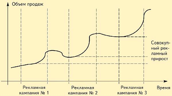Рис. 11.12. Совокупный эффект последовательной цепи рекламных кампаний