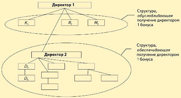 Следовательно, структура (сеть) директора 2 обеспечивает директору 1 получение 7%-ного бонуса (премии), но при условии достижения определенного результата структурой, находящейся непосредственно под опекой директора 1.