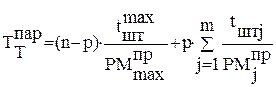 Существуют формулы для нахождения длительности технологического цикла для последовательного (TTпосл), параллельно-последовательного (TTпп) и параллельного (TTпар) вида движения деталей:
