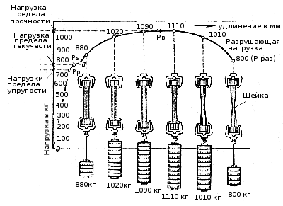 Рис. 4. Диаграмма деформации при испытании металлов на растяжение.