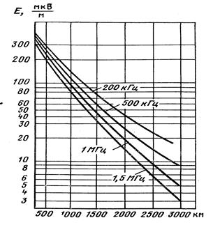 На километровых и мириаметровых волнах на расстояниях вплоть до 2000км расчета напряженности поля можно использовать те же графики, что и для гектометровых волн.