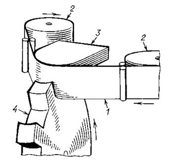 1 - лента; 2 - катушки; 3 - копир; 4 - заготовка.