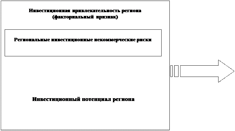 На схеме (рис. 6.1) инвестиционная активность в регионе представлена как функция его инвестиционной привлекательности. Последняя описывается соотношением двух обобщающих характеристик - инвестиционного потенциала региона и регионального некоммерческого риска инвестиционной деятельности. При этом, чем выше инвестиционный потенциал региона и чем ниже некоммерческий риск инвестиционной деятельности в нем, тем выше его инвестиционная привлекательность и, как следствие, тем выше в нем инвестиционная активность.